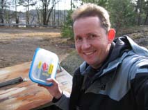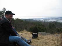 Dagens sista burk blev denna luring av Hedberg. Vi fick gå ganska långt ner i sluttningen innan den var hittad. Fin utsikt från toppen! Njöt av den en stund innan Fiabus, Rraisa och jag avslutade dagens runda. |