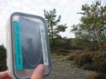 Vätterna #2 | Efter lite letande och helt onödigt klättrande lyckades jag plocka fram burken. Det krävdes att jag läste hinten innan det gick vägen. Sedan åter ut på stigarna mot finalen. | |||