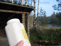 På cachingtur med Cherry B och 5 st fd mugglare. Vi fick ta oss fram genom snår och sankmarker för att nå vårt mål, men väl där plockade Hallén snabbt och ivrigt fram lådan! | |||