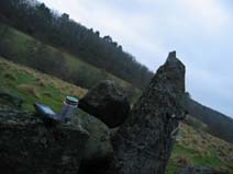 Första burken under turen blev ”CD Exchange”, själva cachen var inte något speciellt, men jag tyckte om att det fanns ett imponerande järnåldersgravfält inom synhåll. Vägen till ”Waterfall” innebar mycket leriga stigar och en synnerligen riskabel tur över en träbro där det rådde blixthalka! Slutligen ledde min vandring mig fram till ”Ormo portar” som var utsedd som mål för dagen.