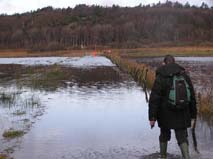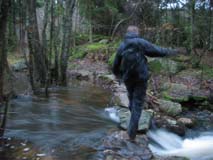 Lyckligtvis hittades den första burken lätt och vi satte fart vidare mot nr 2 i serien. Även den hittades utan problem, men nu skulle det bli tufft, riktigt tufft ute i skogen! Den bästa vägen visade sig vara vattenfylld, långt över stövelskaften så vi vände och försökte oss på en annan väg. Den verkade till en början lovande.