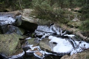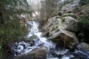 Denna cachingvandring skulle nu avslutas med en ”Wolf” cache – ”Mills and saw”. Tidigare besökare klagade ofta på hur hemsk terräng det var till cachen. Jag förberedde mig därför på det värsta och tänkte noga igenom vägvalet. Det var visserligen lite snår och några meter granar, men jag har varit med om värre, mycket värre! Detta var ju som en promenad i parken.