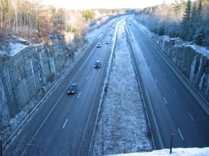 Får att nå nästa cache fick jag gå uppför berget, det är en rejäl backe men farten bibehölls hela vägen, man har nog höjt konditionen ytterligare några snäpp under julhelgens långvandringar – HÄRLIGT! Cachen hittades snabbt, den låg helt enkelt under en gran, inte så spännande och utsikten över motorvägen var verkligen inte kul så jag skyndade mig därifrån.