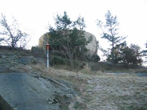 Vandringen fortsatte nu mot ”Svinbådan”, ett fyrtorn en bra bit inåt land men ändå på en hög höjd. Det gick ett joggingspår hela vägen fram så det var inga problem att ta sig dit, cachen var också lätthittad.