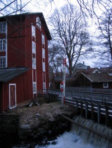 Några minuter i åtta på söndagsmorgonen nådde Hallén Alingsås med tåg. Målet för dagen var framförallt ”Lights in Alingsås” serien. Ett delsteg låg rakt utanför stationen, det var en fördel vid denna tid på söndag morgon, endast en mugglare passerade medan jag letade. Ganska snabbt insåg jag vilket typ av gömma som skulle finnas under ”paraplyet”, men det fanns många platser att leta på. Givetvis var det den sista möjliga platsen som också var cachens hem! Nöjd kunde jag logga ”Lights in Alingsås #3 – Stationen” och gå vidare mot ”Stampen”. Det är fin äldre kvarnanläggning. Jag har letat efter denna cache tidigare men då hade den en annan placering. Idag gick det lättare och jag fick min logg trots att byggjobbare höll på med ett hus strax intill. Märkligt att hålla på med byggjobb mitt i ett villaområde kl 8 på söndag morgon!