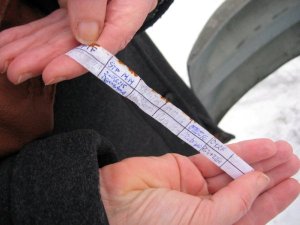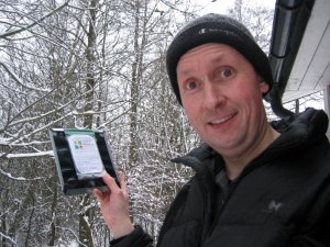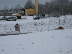 Efter att mina mugglarvänner fortsatt hemåt gick jag mot ”The No Trash Cache”, den låg i ett fint friluftsområde med mängder av barn som åkte pulka. De åkte också på motionsslingorna och kom farande i höga farter nedför de branta backarna, så toppluvorna flög av! Det gällde att se sig för, annars kunde man råka riktigt illa ut i skogen! Väl framme vid cachen, med livet i behåll, hittades den lilla burken lätt och utan problem.