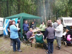 På campingplatsen hade det rullat in en virtuell cache! Den hade sin bas i Tyskland, så fick fakiskt en logg i Skottland och en i Tyskland samtidigt! Hur ofta händer det?