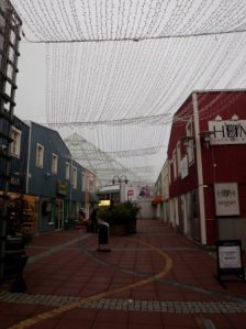 Det borde bli lätt att ta cachen där tidigt på annandagens morgon, tänkte jag. Helt riktigt, det var tomt och öde – men till min förskräckelse ser jag ett butiksbiträde innanför fönstret mitt emot cachen, hon höll på i en evighet med att sätta upp en ny reaskylt. När hon väl var klar med den dyker det upp en sävlig städare som långsamt letar små bitar skräp på golvet. Undertiden lekte jag fotograf…. Till slut var det fritt från mugglare och jag kunde plocka min cache!