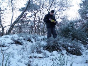 Det var baksidan av en annars så vacker dag. När hunden väl försvunnit kunde jag börja leta. Det tog ett tag att hitta rätt, men spåren i snön efter tidigare jägare gjorde att jag kunde avgränsa sökområdet. Tillslut höll jag årets sista burk i handen. Härligt!