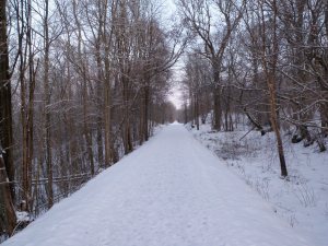 Cache nr 2 blev ”Linnarhultsvägen A”, det var inte en mugglare i sikte, lätt att leta då! Men jag behövde knappt leta, hittade burken omedelbart och fick min logg i skuggan av trädet. Nu kunde jag lämna den stora vägen och ge mig ut på vandring utmed den gamla järnvägen som numera är gång- och cykelbana, vilken ingår i Sverigeleden. Givetvis finns det rastplatser utmed leden och cachen ”Rastplats Sverigeleden” ligger nära en sådan. Ledtråden var tydlig, men här var det en del snö och is. Jag fick ta till ett tillhygge för att knacka loss träskivan ovanför burken och sedan ägna en god stund åt att få loss burken och få ut den ur sin påsen som nästan blivit en del av burken. Tillslut lossnade påsen, locket gick att öppna och jag kunde logga. Pust, denna burk fick man jobba för!