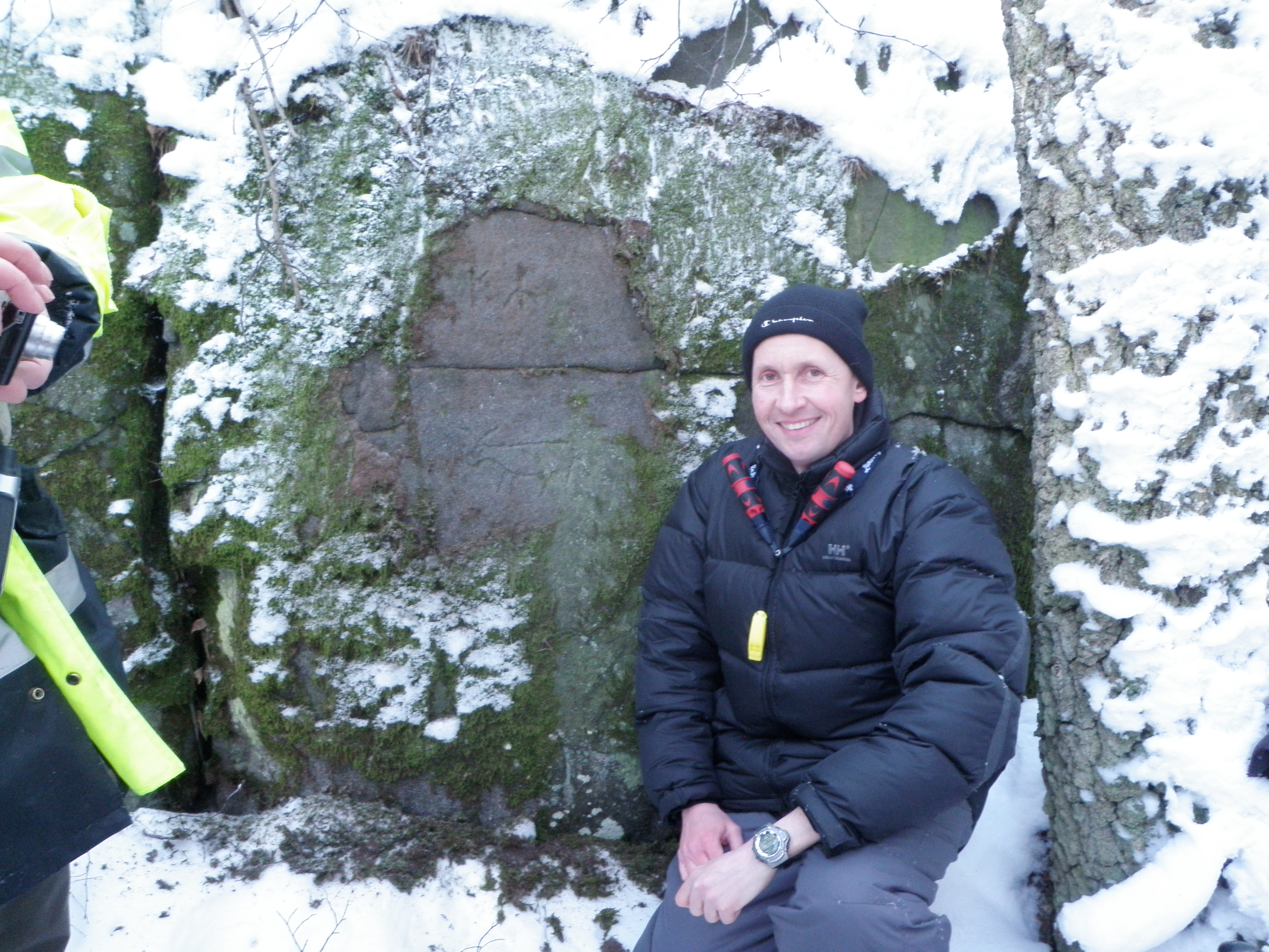 Även om ristningen är modern har jag länge önskat att se den i verkligheten. På Riksantikvarieämbetets hemsida kan man få ut koordinater till fornlämningar, i vissa fall även moderna lämningar som den på Delhuvudet. Vill du läsa vad man skriver om ristningen på Delhuvudet finns här en direktlänk till ”fornsök”.
