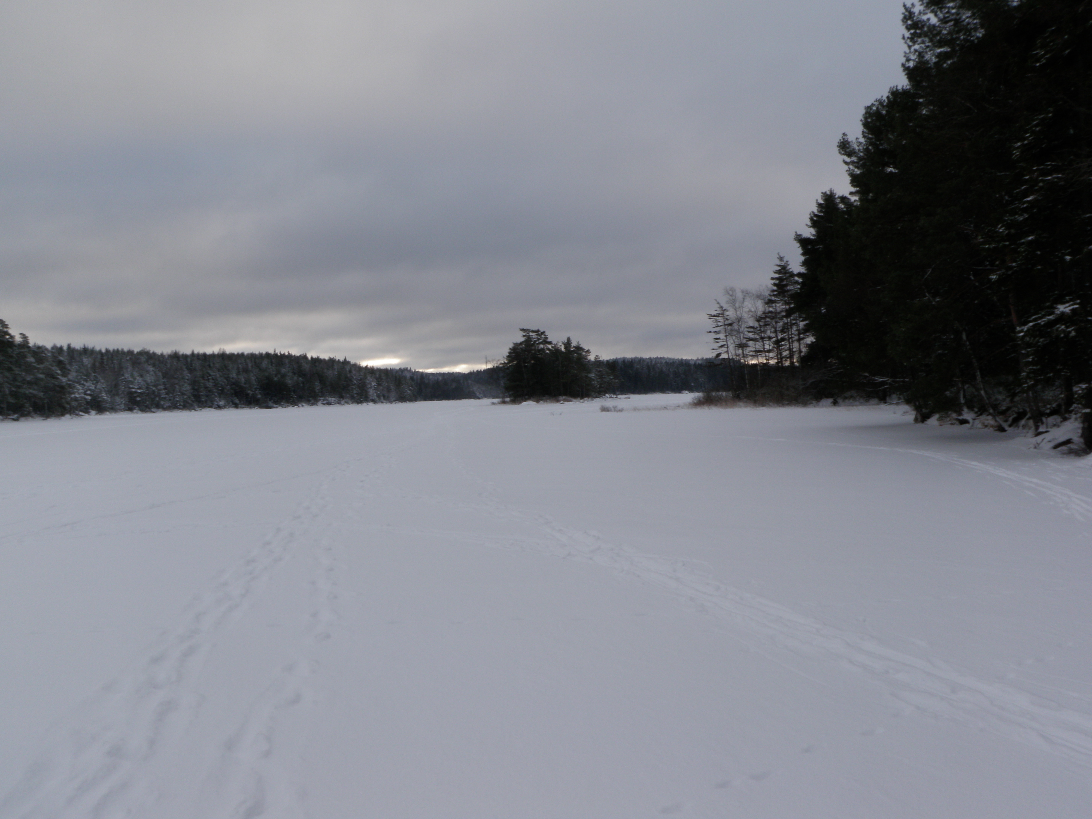 När Långanäs ö var avklarad åkte hela styrkan av geocachare mot Härsjön där det finns ytterligare två cacher på öar. Från parkeringen var det något över en kilometer att gå till det första målet, ”Kräftkalas”. Det var redan flera DNF loggar på cachen, men vi beslutade oss att göra ett försök. I snö och is visade det sig en övermäktig uppgift att hitta en vit micro! Vi gjorde faktiskt två försök på denna, men båda utan framgång. Istället valde gruppen att gå mot ”Härsjö ö”, där gick allt mycket bättre och cachen plockades fram på några minuter. Fler bilder hittar du i Blaufishs fotoalbum.