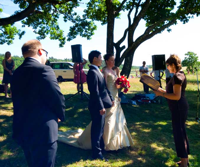 För en tid sedan uppenbarade sig en inbjudan via snigelpost, det var en förfrågan om jag ville närvara vid en vigsel. Som inbiten geocachare började jag genast fundera över om detta var någon ny event typ. Jag kunde inte hitta något på geocaching.com om iconer för ”vigsel”, förvirrad började jag söka efter svaret på annat håll, i uppslagsverk och ordböcker…. Så uppenbarade sig lösningen, det handlade inte om geocaching, det var en mugglaraktivitet! Jag beslutade mig för att infiltrera tillställningen utklädd till mugglare – kostym och slips istället för min normala friluftsklädsel. Hela mugglareventet ägde rum vid Sjövallens idrottsanläggning i Alafors.