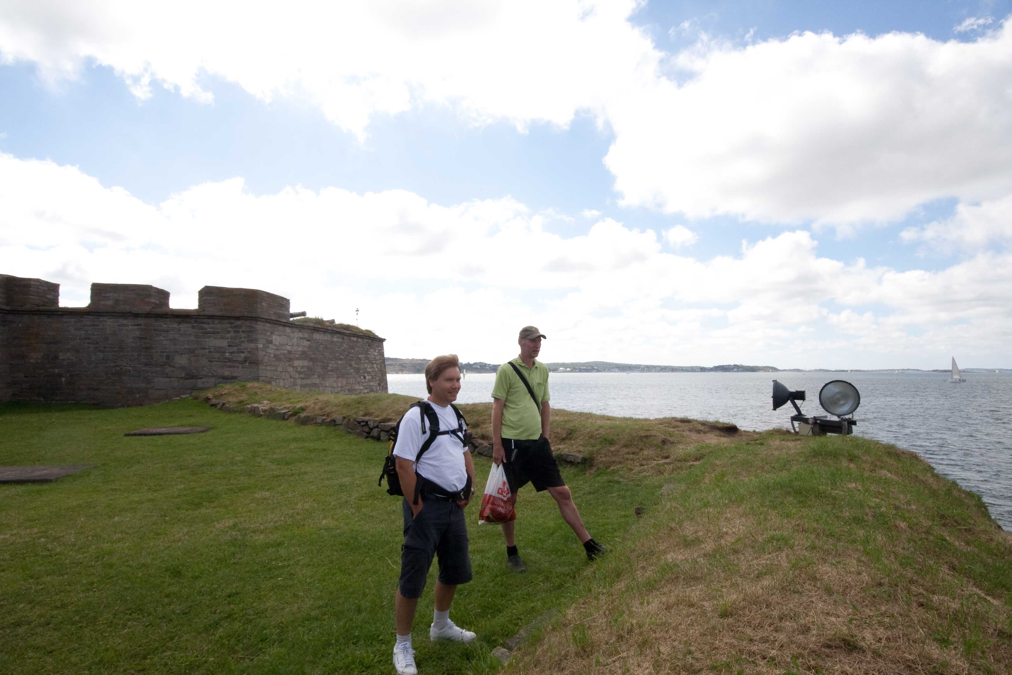 Dagen efter eventdagen blev det åter en cachingdag som gick i vågornas tecken, dags att åka ut till Nya Älvsborgs fästning för att plocka cachen där. Det blev ett team bestående av TMR68, hebb och Hallén. Cachen har lite ovanlig rating, 3/5, något vi alla saknade i vår statistik. Det blev därför till att köpa biljetter och åka ut med alla turistmugglarna. Men när mugglarna gick in på fästningen för att gå på rundtur avvek vi tre för att gå på utsidan bort mot cachen. Det visade sig att vi nog tog en ganska krånglig väg till burken, men det skall väl vara lite utmaningar för att få en terräng 5:a? Burken hittades omedelbart, sedan hade vi gott om tid att går runt och titta på fästningen som är väl värd ett besök. Det var väl många år sedan mitt senaste besök.