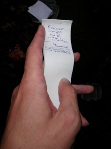 När jag nådde nollpunkten såg jag omedelbart en misstänkt plats, där låg också en burk, locket öppnades och vad fick jag då se?