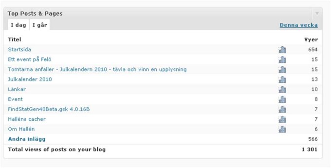 Startsidan fick 654, sedan spreds besöken ut över hela bloggens arkiv, i en vild jakt på tomtar misstänker jag!