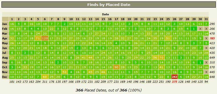 Dessutom har luckan i ”Finds by Placed Date” för den 29 februari fyllts genom lördagens logg.