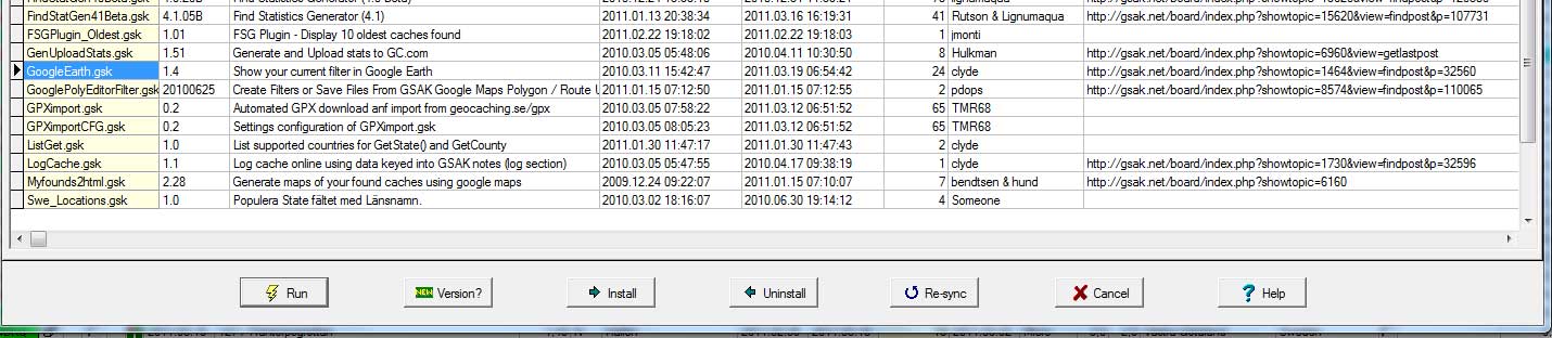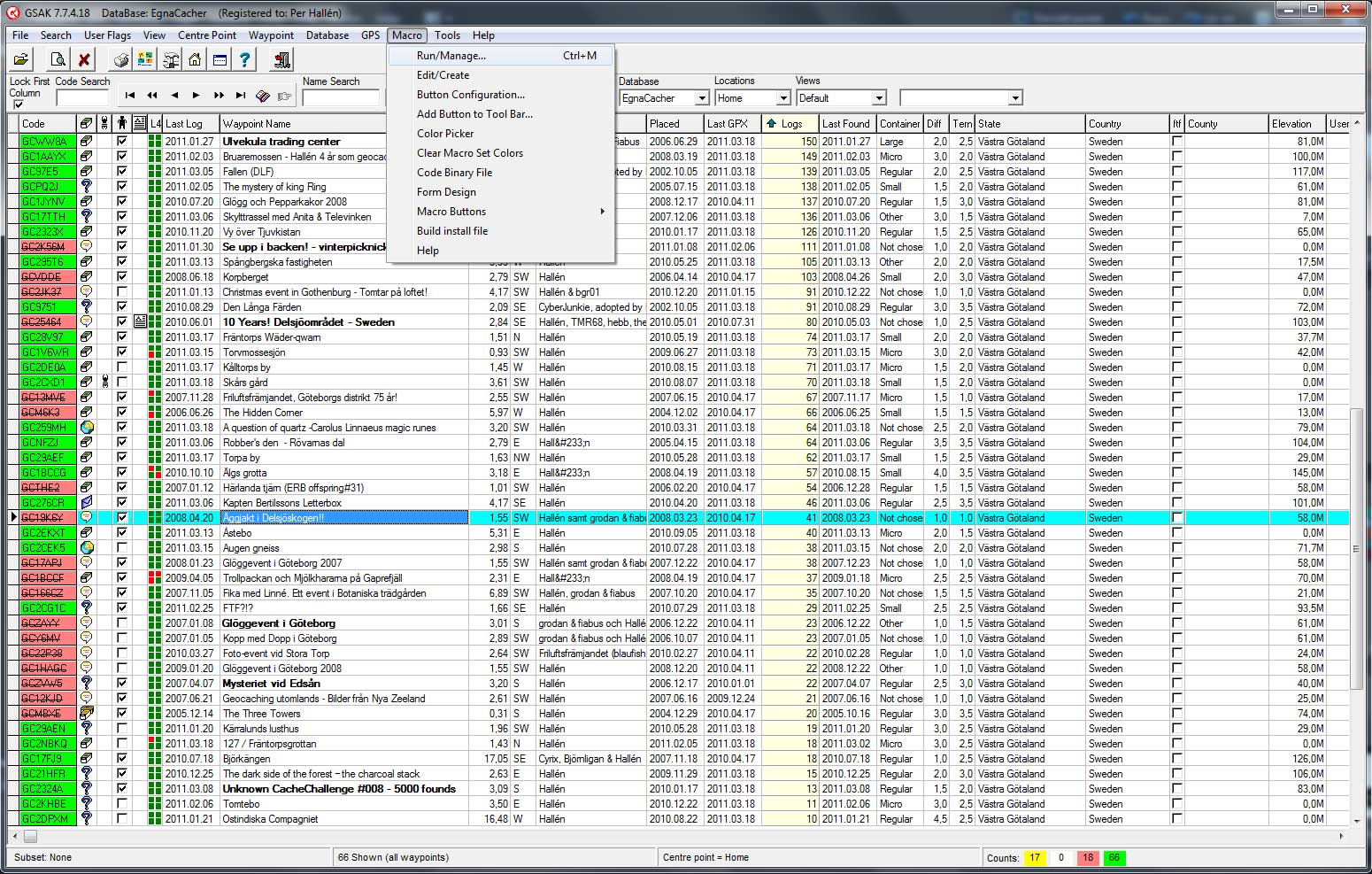 Steg 1. Starta GSAK och se till att du har macrot GoogleEarth.gsk installerat.