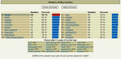 Hur gick det på ”topplistan” över de som jagar för att få så många Hallén-burkar som möjligt efter att jag adopterat ett antal grodan & fiabus-cacher?