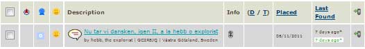 När jag närmade mig burkan tittade jag mig noga omkring, kunde det vara någon som ville stoppa min framfart? Var guiden som visade TMR68 vägen på plats? Nej – allt såg lugnt och stilla ut, det var bara att gå fram och börja leta. Snabbt hade platsen lokaliserats och det var inte utan att man kände igen ”burken” från en annan hebb-cache! Kan det vara så att han fått ett fantastiskt erbjudande – köp två betala för tre? Cachen var snabbt loggad.