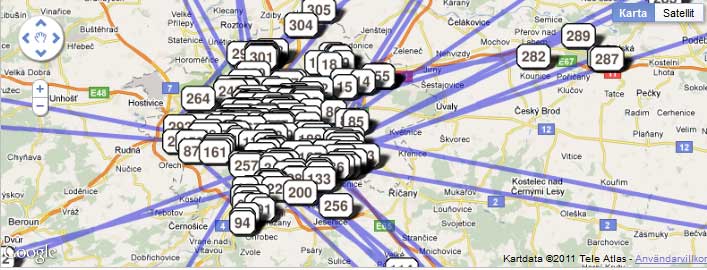 När man tittar på resan kring Prag är det bara ett enda gytter av nedslag denna TB gjort. Men det är ändå bara en del av resan, krypet har dessutom besökt näst intill alla burkar på power-trail cacherna kring Halmstad och Nordsjælland, antalet burk-besök är helt otroligt.