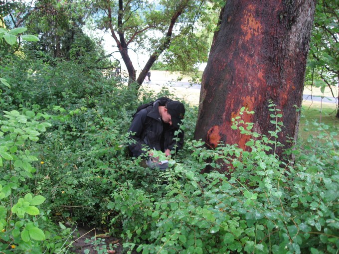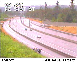 Omedelbart efter frukost gav vi oss på jakt efter nästa cachetyp, en webcam ”SR 520: NE 51st St.”, här behövde vi hjälp från någon vid en dator som kunde ”ta bilden”, några Stockholmsalternativ prövades utan framgång, men när jag ringde connyivar kom räddningen. Han kunde vara på plats vid datorn inom några minuter. Oftast brukar dessa webcam cacher vara lätta att plocka, men här höjdes svårigheten av att man fick ta sig ned genom eländiga taggiga snår mot en motorväg och ställa sig i kanten av den för att bli fotograferad!