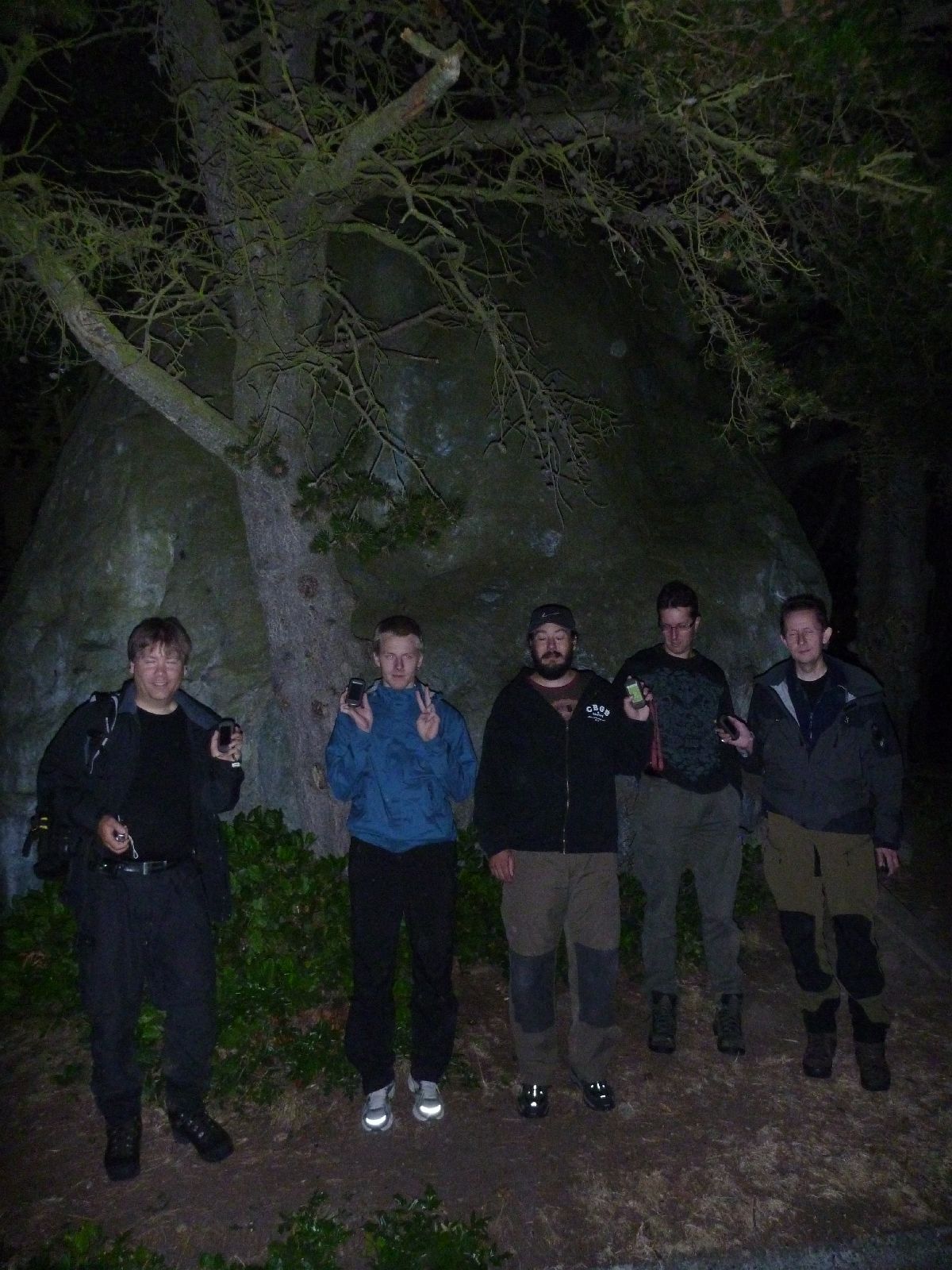 Multicachen för dagen blev ”Bird Haven”. Åter fick vi smyga omkring i en park/grönområde, första steget hittades snabbt och det var inte långt till finalen. Den var dock lite lurig då behållaren var snyggt utformad och smälte samman med omgivningen, mörkret ökade givetvis svårighetsgraden! Men för att vara en multi var cachen snabbt avklarad, så som man vill ha det när man jagar statistiska mål.