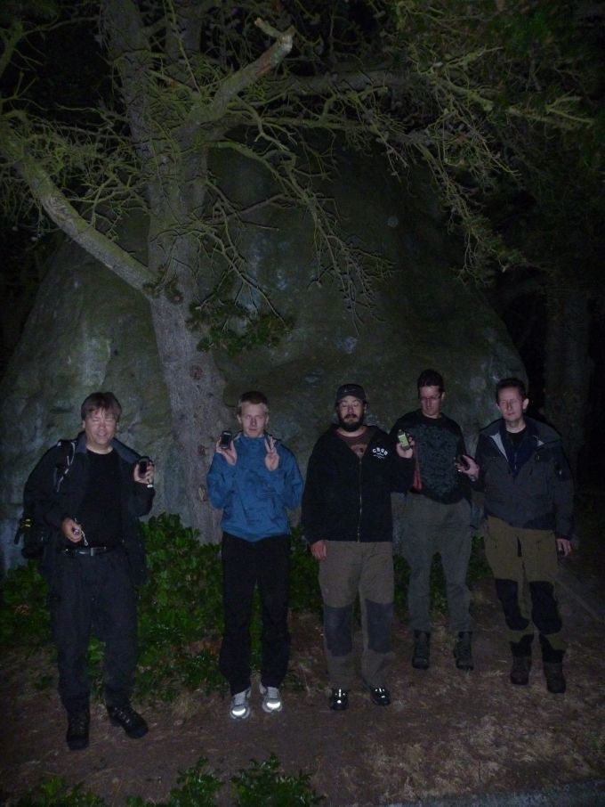 I vårt närområde fanns en snabbt avklarad letterboxcache, ”Yugi-Oh Letterbox”. Finalkoordinaterna fanns utsatta i cachebeskrivningen så det var bara att gå rakt på, ja nästan. Slutsteget låg uppe i en sluttning som var ganska brant och besvärlig i nattmörkret.