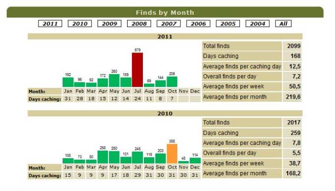 Efter den gångna helgens intensiva burkjakt i Örebrotrakten har förra årets totala burkmängd på 2 017 burkar passerats. I skrivande stund står min mätare på 2 099 cacher hittills under 2011, nu är endast frågan hur stort det nya rekordet skall bli!