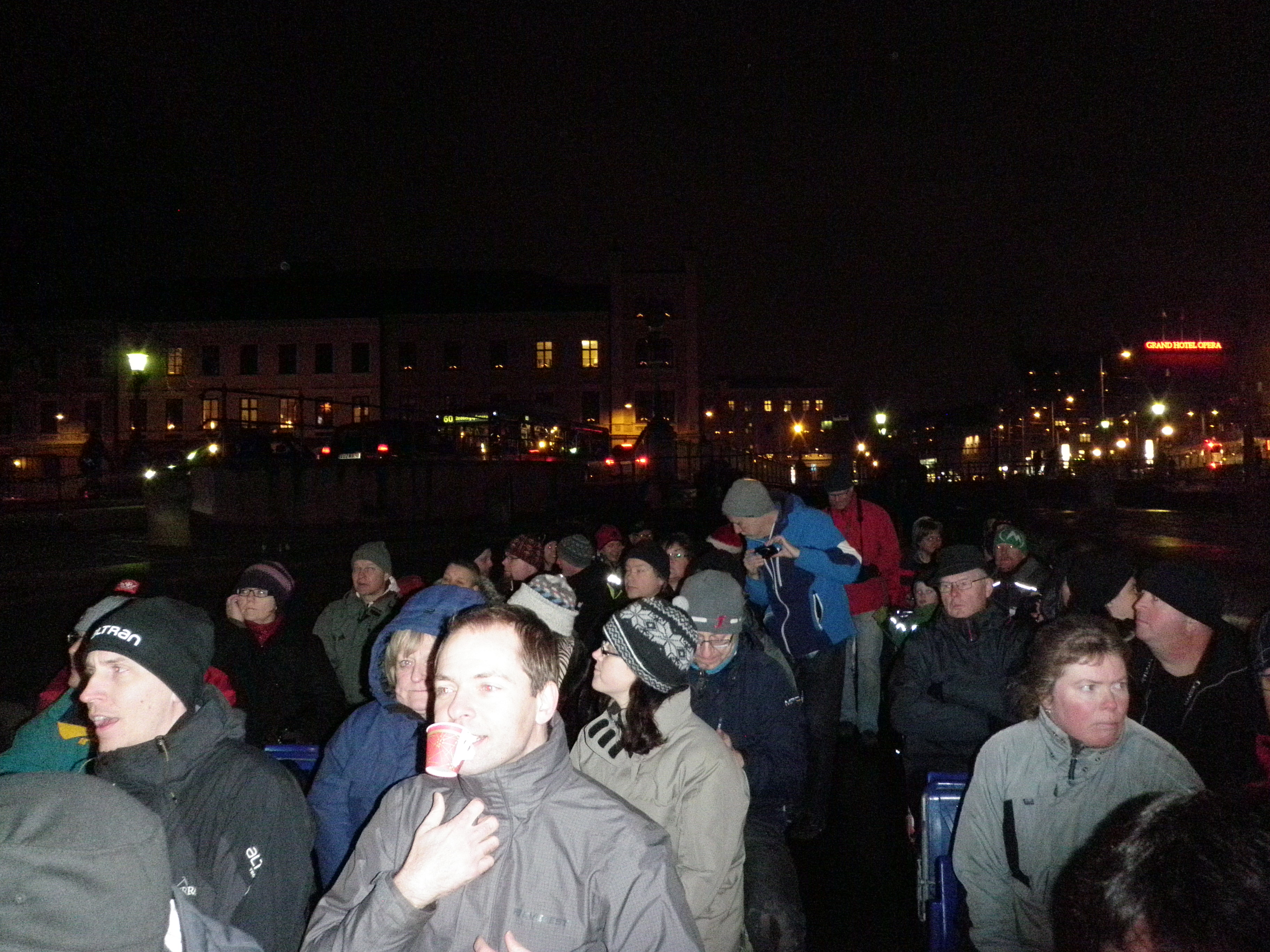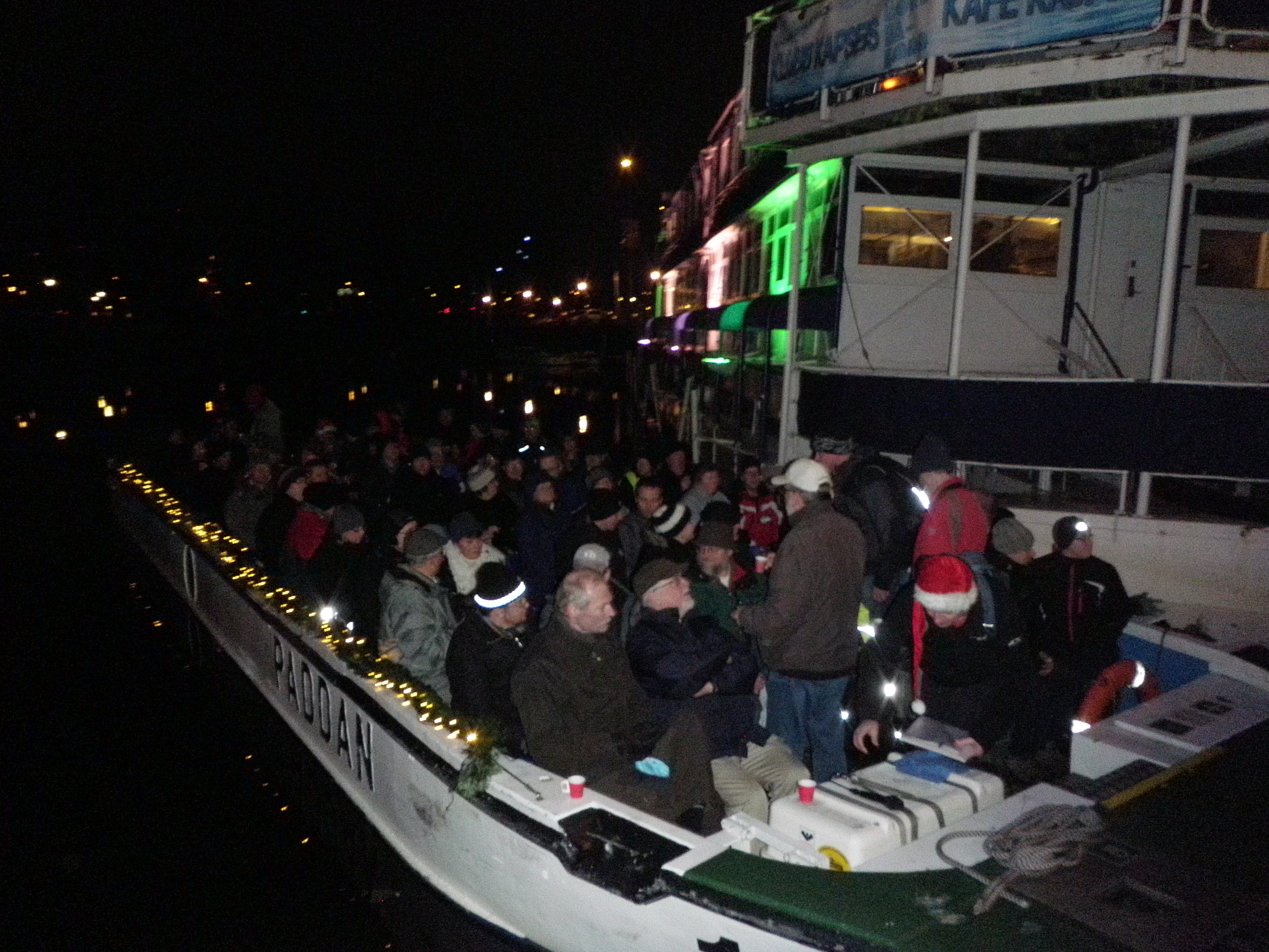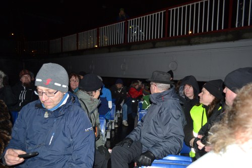 Vid 17.45 gick alla, utom jag som stod kvar ovanför trappan och tog betalt, ned mot båten och fick glögg och pepparkakor. Det fick även jag i sista stund innan avfärd.