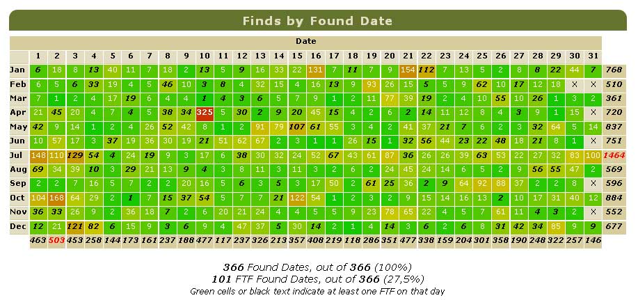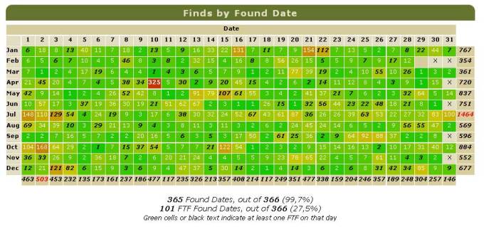 Alla datum är avklarade, FTF loggar per datum är en annan ”tävling”…..