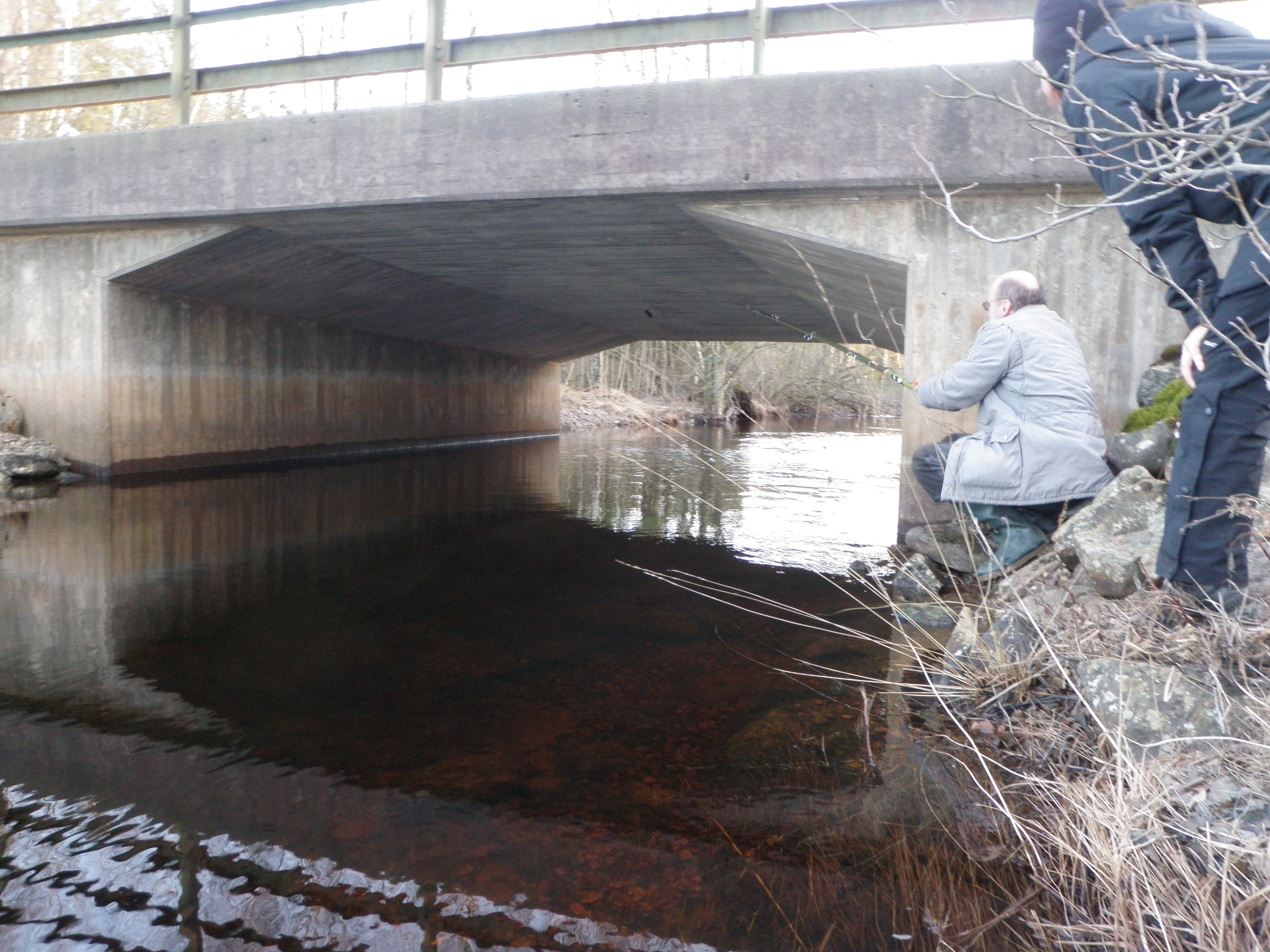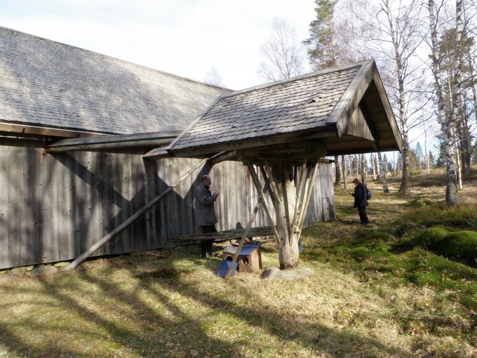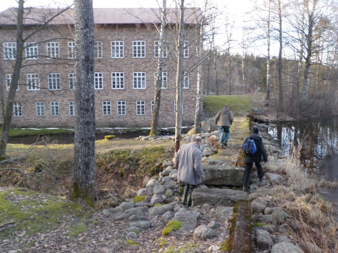 När vi höll på att söka efter nr 7 i serien, som tog längst tid att hitta av alla burkar (!) fick vi ett telefonsamtal som varnade oss för att det nu fanns en stor grupp Boråsare som jagade efter oss i skogen!! Ett hot värt att ta på allvar! Burken fick nu hittas snabbt, sedan rusade vi iväg på stigarna. När vi höll på att lösa multin och kommit fram till ”Långås Torp” lyckades boråsgänget komma i kapp oss, vi hade nämligen gjort misstaget att ta en kortare matpaus! Miljön kring torpet var fantastiskt fin, bästa stället utmed hela rundan för en paus.