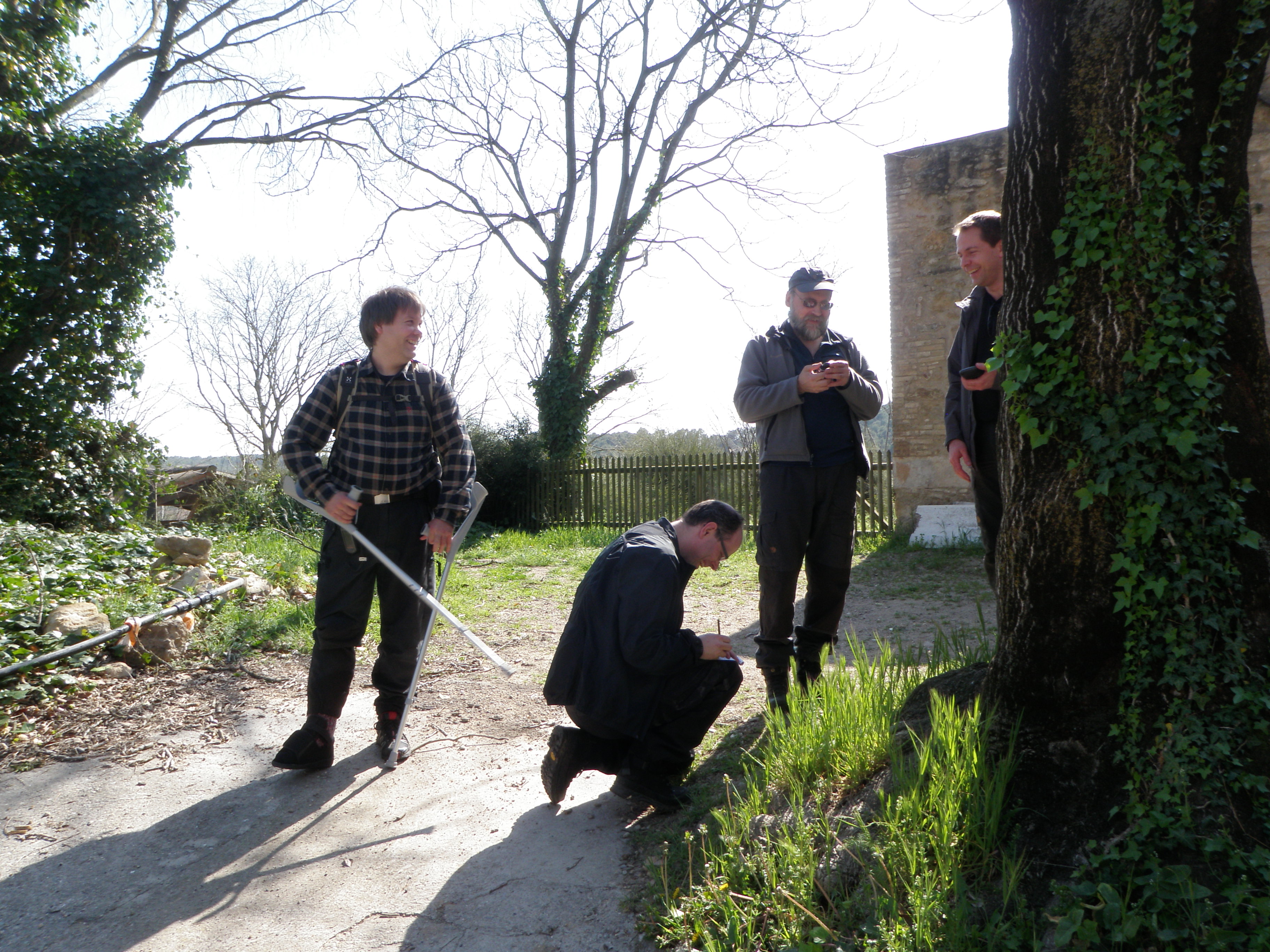 Denna lördag, den sista dagen i mars månad anno 2012, inledde Team SE – Ingabo, Hallén, TMR68, Zcriptar och snafas – den stora resan i Spanien. Vi flög med Ryanair från Säve ned till Girona, en stor fördel med en direktförbindelse även om ”irländarens” plan är aningen trånga. Vi anlände på utsatt tid till Spanien och hämtade ut två förbokade hyrbilar. Vi åkte omedelbart i riktning mot vårt boende för att lämna av bagaget. Strax innan vi nådde fram till stugan vi hyrt började burksuget bli väl stort, vi tvärnitade utanför en kyrka, allt för att få lite andlig spis – vilket i vårt fall innebär att man loggar en cache. Vi stormade in på området och mötte en kvinna som var på väg ut ur ett av stenhusen, men hon hälsade bara artigt och såg inte det minsta förvånad ut över vårt beteende. Det är troligt att hon kände till cachen. Vi fick leta en stund innan slutligen burken hittades, vilken lättnad! Första burken i Spanien var avklarad.