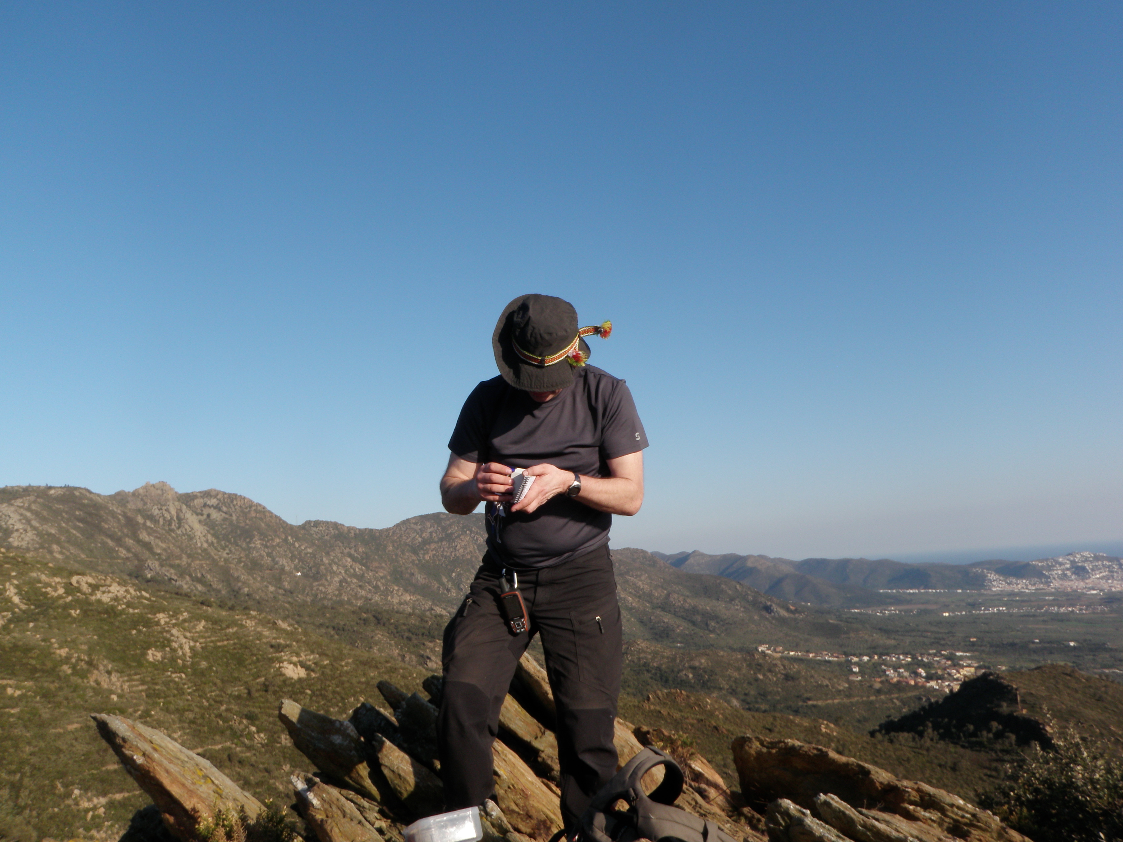 Zcriptar och Hallén gav sig snabbt upp genom en liten by, där vi parkerat bilen, och sedan ut på den steniga stigen upp mot bergen. Vi var lite bekymrade över att vi endast hade en liten halvtom Coca Cola flaska med oss och solen lyste obarmhärtigt från en klarblå himmel. Det skulle bli tufft att gå utan vätska, men sånt får inte hindra härdade geocachare från att leta burk! Vi arbetade oss målmedvetet uppför sluttningarna och loggade burk efter burk.