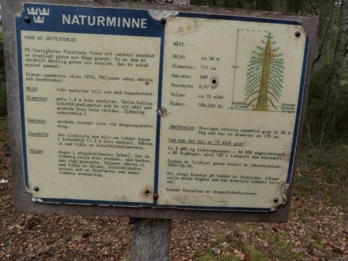 Det är sällan man ser skyltning in till en gran! Men så var fallet med ”Prästtorpsgranen”, den var även försedd med en skylt som här beundras av mina medresenärer.