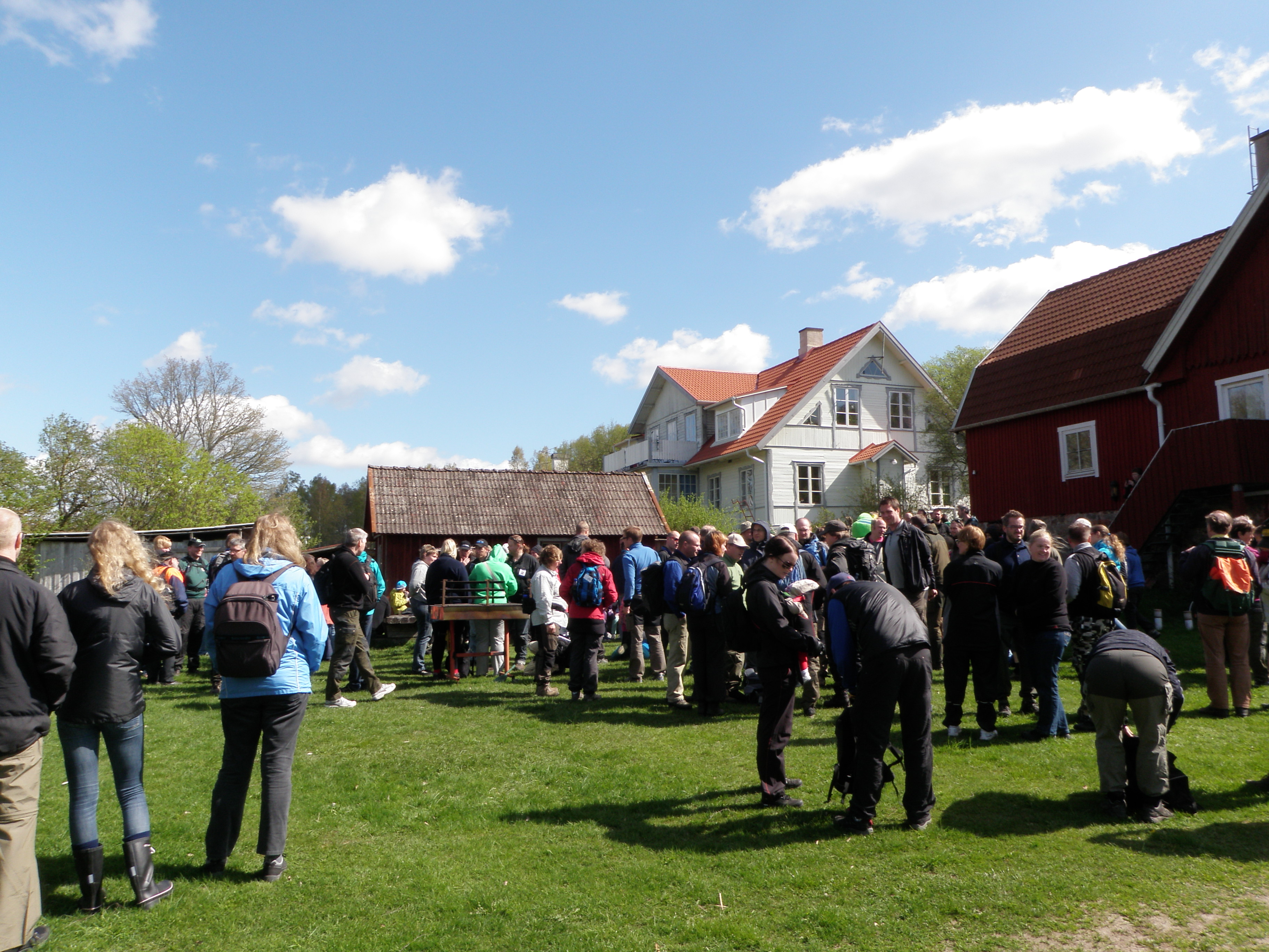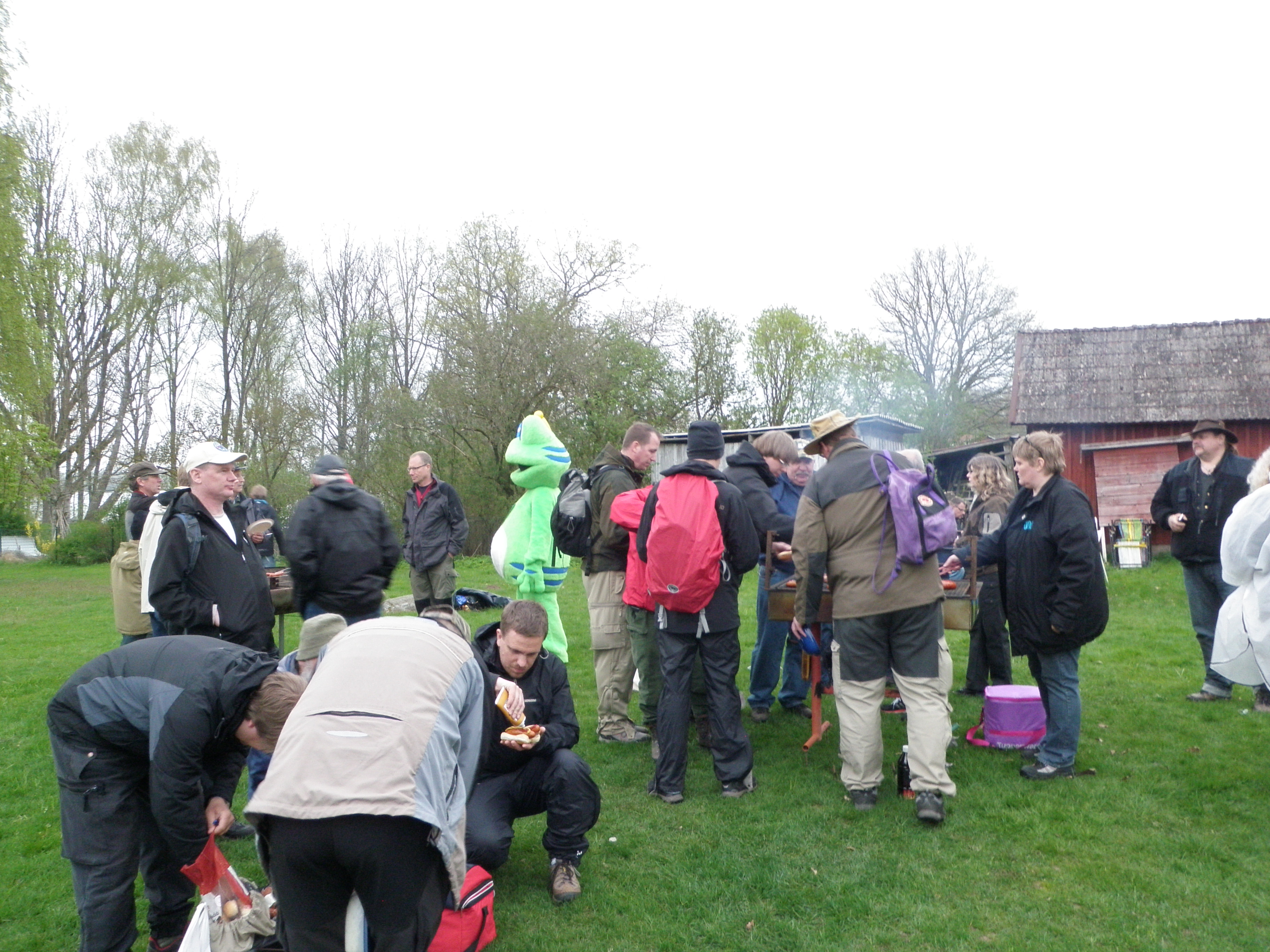 Dagen började som vanligt med att man fick lämna in sin gps på laddning – eventets många burkar skulle läggas in – sedan var det stor samling på gräsmattan utanför den scoutgård man lånat denna eventhelg.