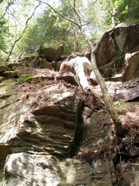 Vi fick ytterligare några kilometers skogsvandring kring sjön, bitvis på rejält igenvuxna stigar.
