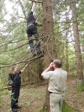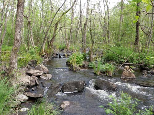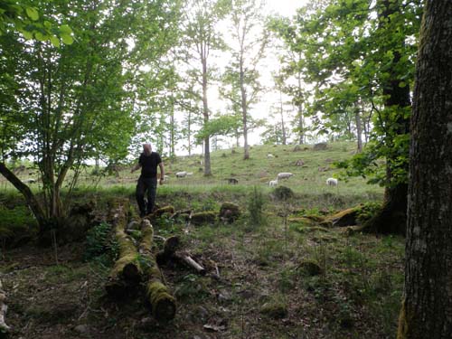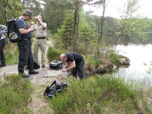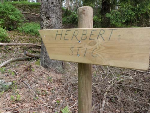 Men efter dessa inledande utmaningar var terrängen inte längre lika problematisk, men flera gånger under vandringen tog det ganska lång tid att hitta burkarna. Vi började inse att målet på 84 burkar, som fanns på peg54321:s lista nog skulle bli lite svårt att uppnå. Men vi fick en fantastisk tur genom skogen denna varma vårdag – som snarast var en högsommardag! Jag var glad att ha en treliters vattensäck i ryggsäcken, vätskesystem på ryggen är fantastiskt bra.