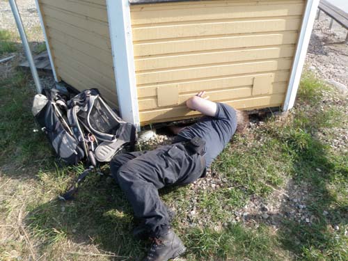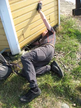 När vi nådde finalen fanns det inte något som liknade hinten. Efter en lång stunds letande ringde vi en livlina och fick då klart för oss att hela cacheplaceringen var borta! Extremmugglare hade alltså varit i farten. Men vad gjorde det, vi kunde fortsätta på vår väg utmed vattnet och plocka burk efter burk efter burk efter burk. Men ibland kan man nog undra vad herrarna höll på med!