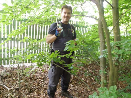 Framåt kvällen hade vi börjat nå de norra delarna av området med Hundpromenadcacherna och efter klockan 22 började mörkret att sänka sig över skogsområdet. Det började bli lite mer besvärligt att hitta cacher så vi gav oss in mot centrum. Typiskt nog fanns inget fungerande lyse på min hyrcykel, det gällde alltså att undvika polisen denna kväll! Den enda polisbil som vi såg passerade när vi stod dolda invid ett hus och smusslade med en loggbok. Det blev något över 70 hittade cacher och 29 kilometer cykling denna första halvdag. Tillbaka till hotellet kom vi dessutom helskinnade och kunde ovaggade somna framåt midnatt för att samla krafter inför lördagens heldags-cachingtur.