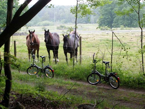 De långa raksträckorna fick mig att tänka på 8:an i Skatås, som TMR68 envisades med att påminna mig om! Men tillslut hade dessa raka vägar klarats av och vi kom åter in i utkanten av Hundpromenadområdet. Vi gav oss åter ut i skogsmarken och började mycket framgångsrikt plocka burk efter burk efter burk efter burk. Ibland hände det att vi fick åskådare, bland de mest nyfikna var ett gäng hästar.