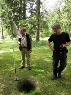 Vid ”Dances With Sheep #4” fick vi ett problem att lösa. Någon hade grävt djupa hål och satt upp flaggor. Är det möjligen så att det är mugglare som gräver hål för att fånga geocachare i dessa? Otäck utveckling i så fall!