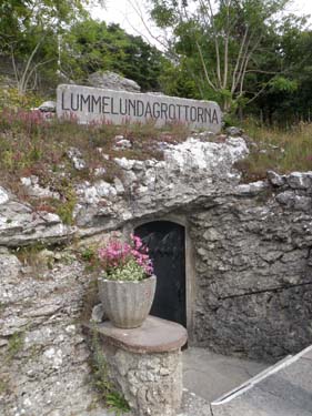 När vi var klara med promenerandet kring Tofta tog vi bilen norrut mot Lummelunda. Vid grottan finns en Earth Cache, en mystery och en multi. Vi gav oss på de två förstnämnda. Som äkta turister tog vi en tur i grottan!