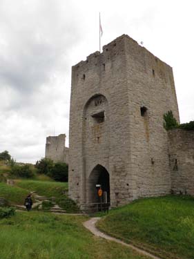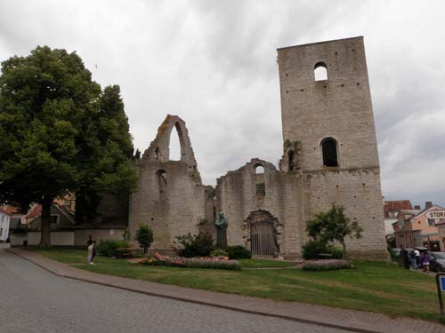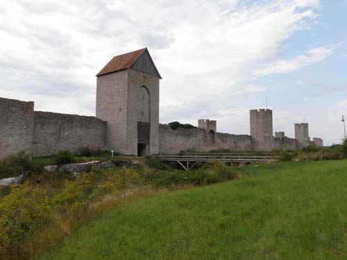 Cachingen denna dag skulle avslutas i Visby. Enligt väderprognoserna skulle det nämligen komma in ett riktigt oväder över Gotland på söndag eftermiddag/kväll och då är det en fördel att vara i en stad och inte ute på vandring! Vi tog oss runt mellan några burkar i staden med lite blandad framgång. Troligen var vi lite trötta och hungriga, då brukar det gå sämre med letandet. När vi satt oss ned på en uteservering (under tak) kom åskvädret in över land, och det var rejält. Regnet var rikligt och blixtarna många. Vi var glada att vara under tak, men ovädret blev långvarigt. Alltså fick vi gå tillbaka mot bilen i ösregnet, ändå kunde vi plocka två burkar. Det hjälper med lite mat!