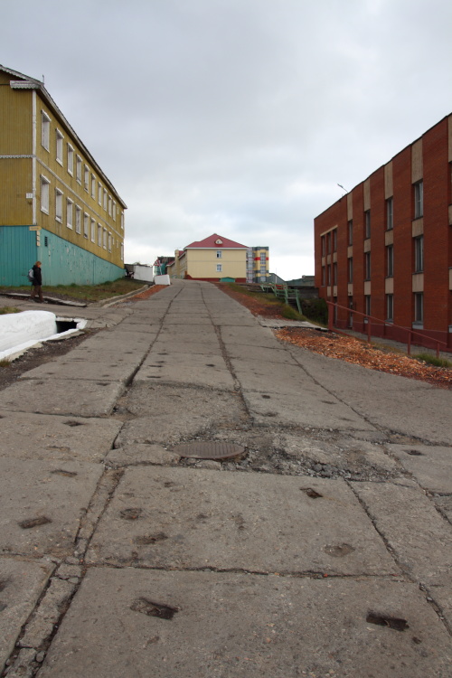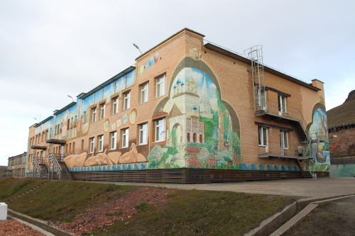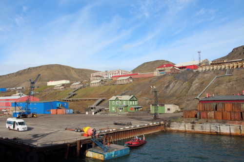 Efter någon timmes båtfärd nådde vi fram till Barentsburg, den enda kvarvarande ryska bosättningen på Svalbard. Där bryter man ännu stenkol, men det skeppas endast ut tre båtlaster per år från gruvan! Slutsatsen måste bli att det inte är kolet som är viktigt för Ryssland, det är närvaron i Arktis som är det viktiga, att behålla en stad i området.