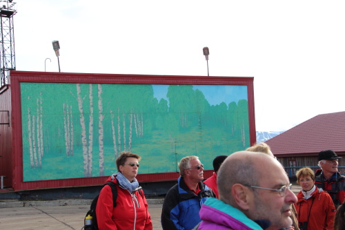Vid toppen av trapporna väntade de ryska guiderna som skulle ge oss en rundtur i ”staden”. Jag var mycket nyfiken på att höra hur de presenterade samhället och sin närvaro i Arktis. Inte blev jag besviken, det var en mycket rysk framställning – en blandning mellan det gamla Sovjet och det nya nationalistiska Ryssland. Samhället Barentsburg var fantastiskt, allt fanns från butik till sportcenter till 5-stjärntigt hotell – man kunde knappt hålla sig för skratt! Den ena överdriften efter den andra om detta ideal samhälle!