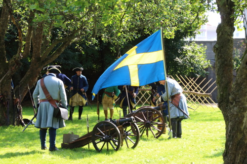 När jag kom in i den fantastiska 1700-tals miljön vid klippan såg jag snart att något var på gång, det fanns soldater i området, härläger med både danska och svenska flaggor. Det var spänning och dramatik i luften.
