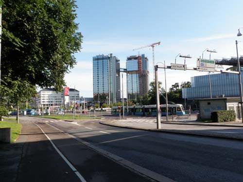 Jag fortsatte i riktning mot Korsvägen, men vek av upp mot höjderna och passade på att logga ”Champion Radio”, där fick jag god nytta av satellitbilden i telefonen för att lokalisera rätt punkt. När den var avklarad bar det av nedför igen med utsikt mot Göteborgs växande storhotell.