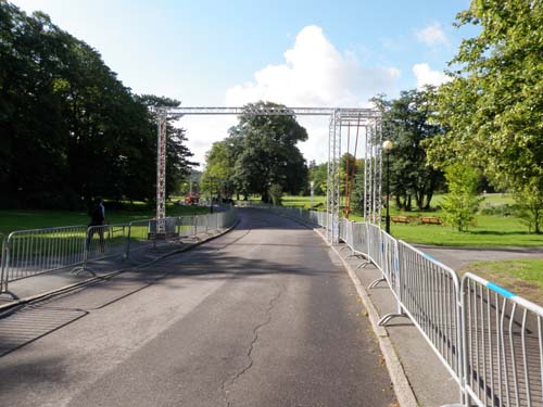 Jag passerade genom Slottskogen där man gjorde i ordning inför mugglareventet ”Midnattsloppet”, lite frestande var det allt att placera ut högterräng cacher över huvudet på deltagarna, framförallt en av deltagarna.