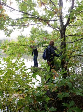 Nästa utmaning var lite värre, ”Hängande trädet” var halkigt och inte så stabilt, vad gör man då? Skickar ut peg54321 naturligtvis och höjer kameran för att kunna fånga det stora plasket….